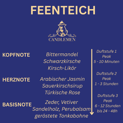 Feenteich ist eine dunkelfruchtige, holzige Duftkerze mit likörartiger Tiefe und warmer Ausstrahlung.